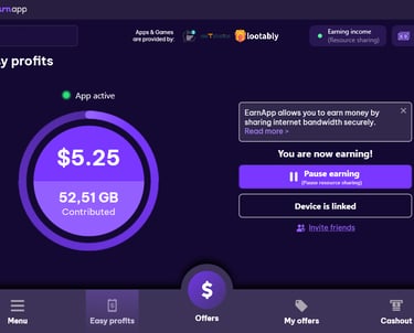That’s it. There’s no clicking, no tasks, and no need to keep checking the app. EarnApp automatically connects to its network and begins earning.